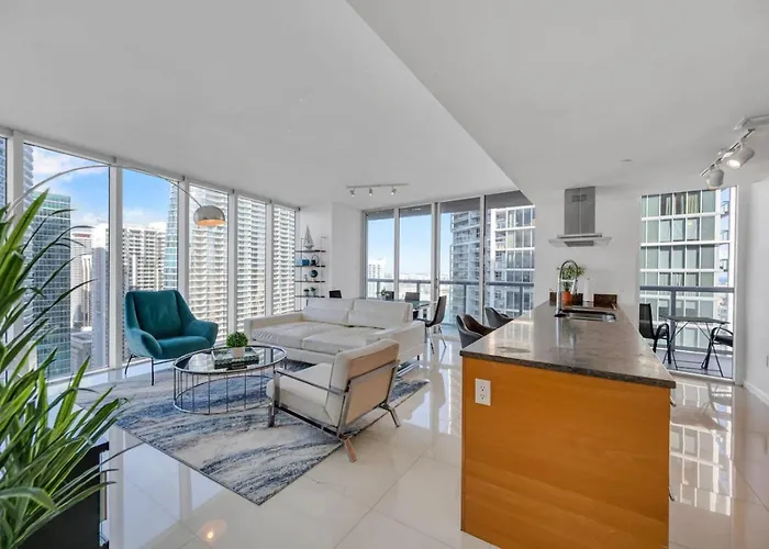 Bij Sun, Style And Skyline Modern Icon Brickell 2Br Appartement kunnen gasten gebruik maken van self-catering voorzieningen, waaronder een ingerichte keuken, en genieten van hun maaltijden in een eetgedeelte. Miami Internationaal ligt op 5 km afstand en bushalte Brickell Avenue & Southeast 5th Street is vlak om de hoek van deze 2-slaapkameraccommodatie.
